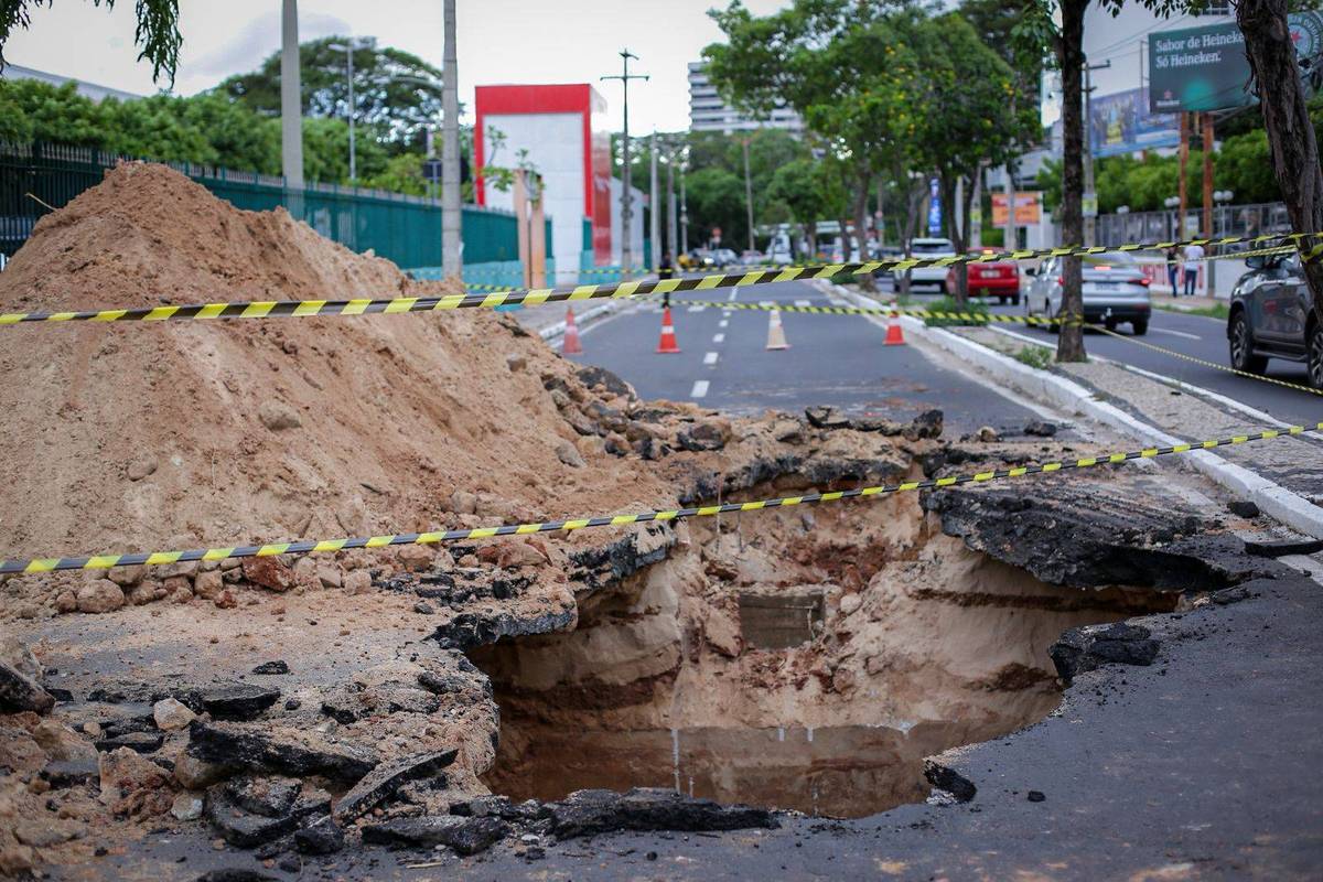 Avenida Jóquei Clube é interditada para reparos após formação de cratera