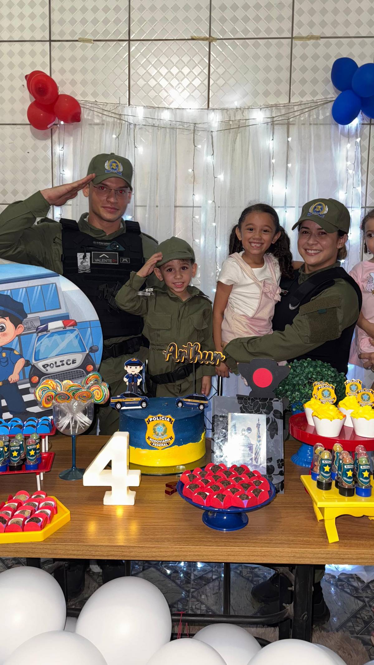Com o tema policial escolhido para a comemoração, os pais, Lucas Breno e Iara Santos, moradores do bairro Ilhotas, zona Sul da capital, pediram à PM que participasse da festa. Quando a viatura chegou, Arthur correu até os policiais e foi recebido nos braços de uma policial feminina, em um momento que emocionou toda a família.