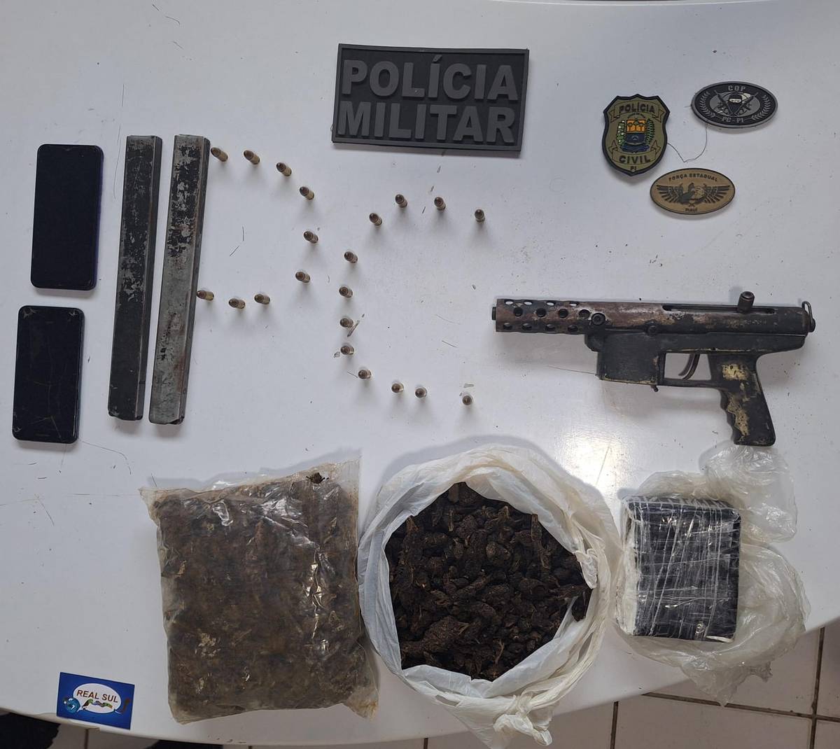 Em ação conjunta, equipes da Polícia Civil do Piauí, por meio da Delegacia de Manoel Emídio, e da Polícia Militar apreenderam drogas e uma arma de fogo após denúncia anônima no município de Colônia do Gurguéia, no Sul do estado.