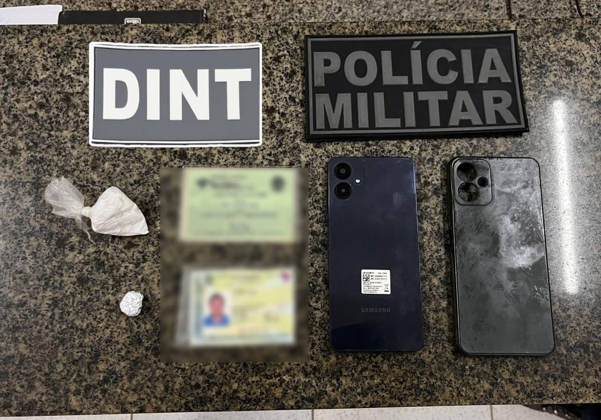 De acordo com o relatório, os policiais observaram S.S.A. trafegando em alta velocidade em uma motocicleta Honda Pop preta, acompanhado de R.N.R.F. Durante a abordagem, os militares encontraram um pacote pequeno de cocaína escondido no compartimento do veículo e uma trouxinha de maconha em poder do condutor.