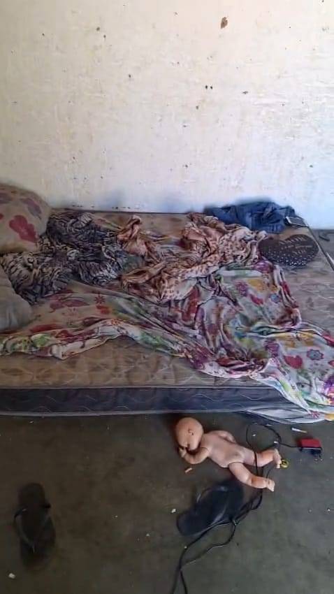 Ao chegar ao local, os policiais constataram uma situação de extrema vulnerabilidade: a criança foi encontrada em um ambiente insalubre, com restos de comida e latas de bebida espalhadas, enquanto a mãe apresentava sinais evidentes de embriaguez e comportamento agressivo, demonstrando total incapacidade de cuidar da menor.
