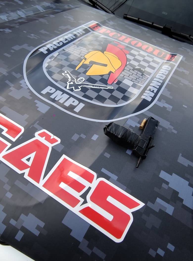 Durante a fuga, um dos ocupantes da motocicleta dispensou um objeto. Após a abordagem da dupla, os policiais realizaram buscas no trajeto percorrido e localizaram o material descartado, constatando tratar-se de uma arma de fogo de fabricação caseira, acompanhada de uma munição calibre .38 intacta.