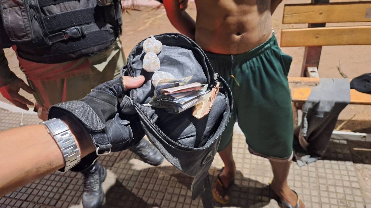 Ao realizarem a averiguação, os policiais encontraram dentro do coco três sacolas contendo 60 porções de crack. Além disso, foi localizada uma pochete com R$ 75,50 em dinheiro trocado, o que reforçou a suspeita de comercialização de entorpecentes.